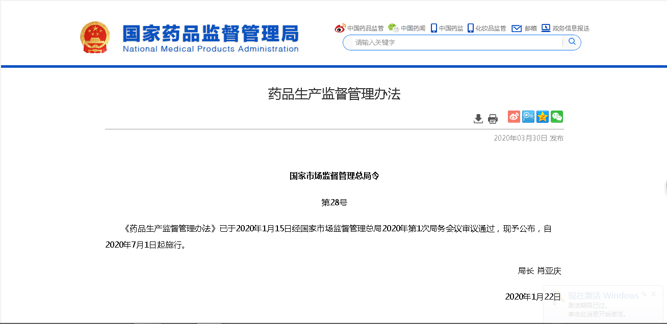 2020年3月30日,市場監管總局以總局27號令公布《藥品注冊管理辦法》,以28號令公布《藥品生產監督管理辦法》,兩部規章將于2020年7月1日起正式施行...