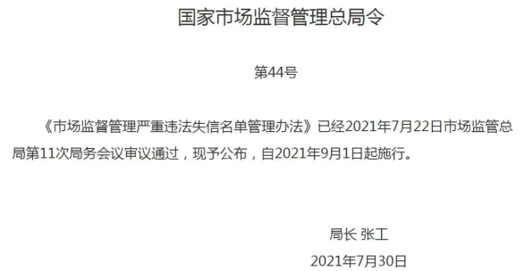 日前,《市場監督管理嚴重違法失信名單管理辦法》經市場監管總局第11次局務會議審議通過,自2021年9月1日起施行。其中,第九條明確指出,侵犯商業秘...